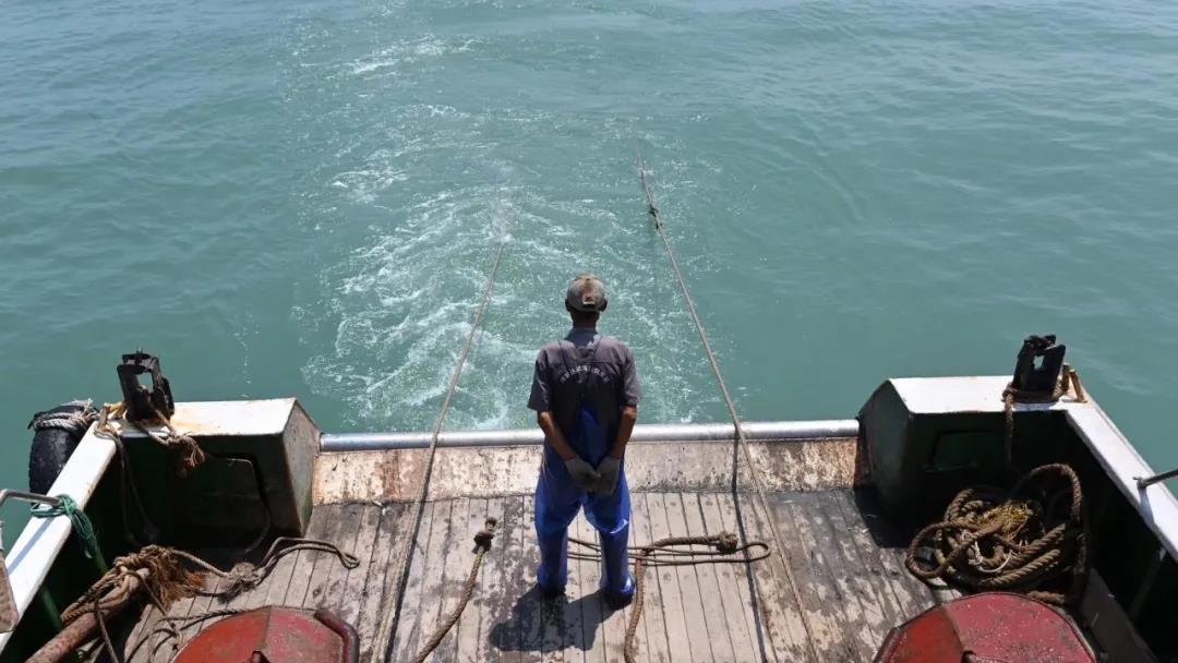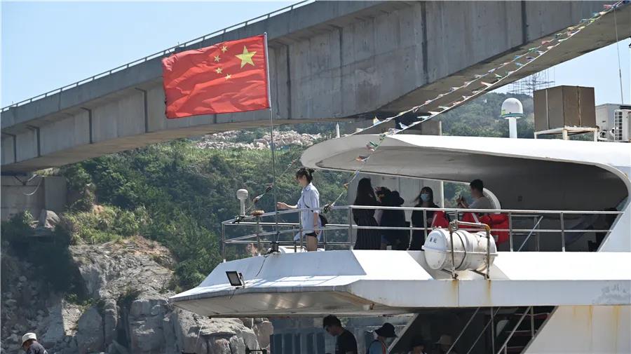 遠(yuǎn)眺正在建設(shè)的海上工程,