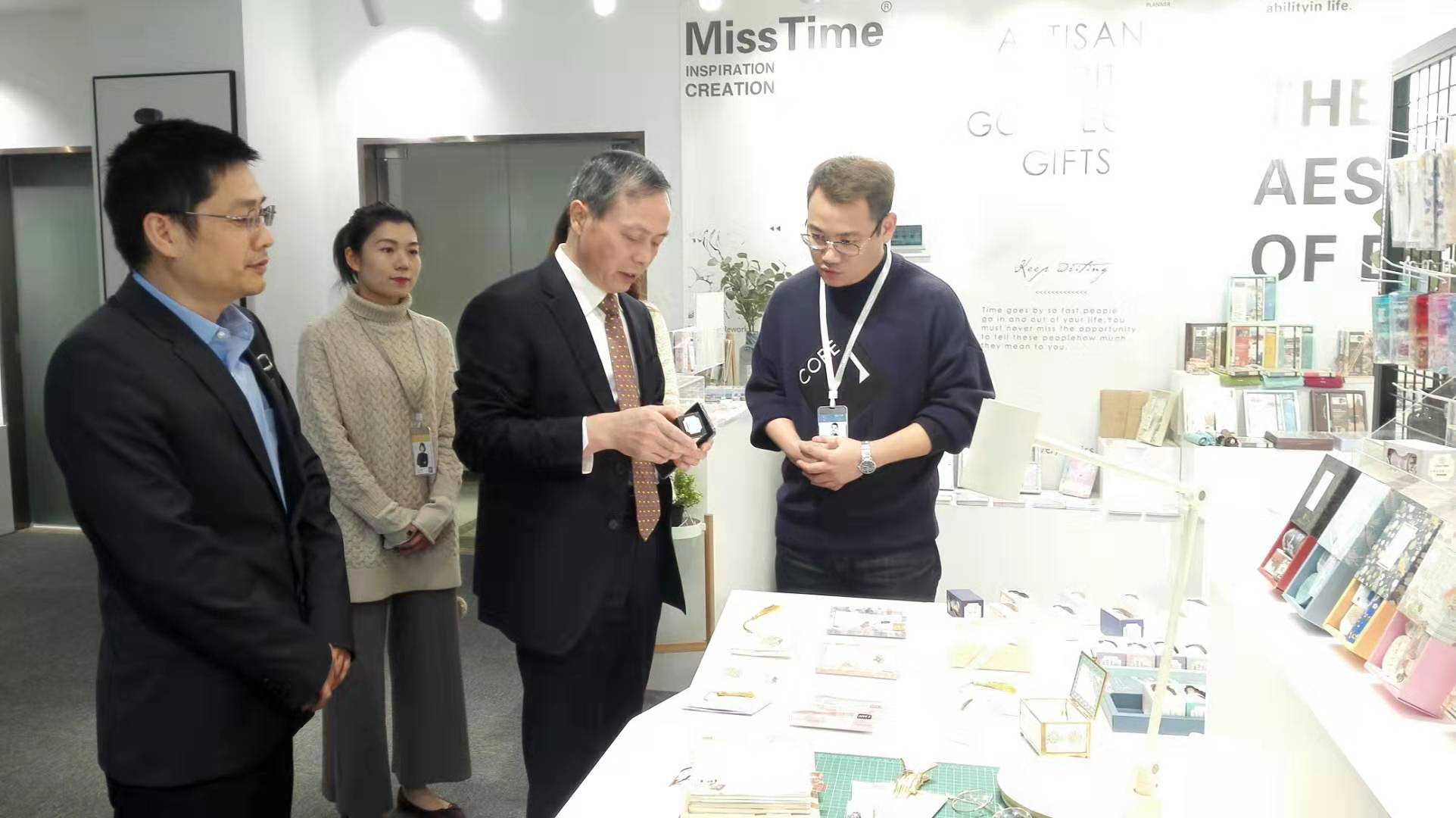 虞岳明一行先后考察了拾光藝創(chuàng)文創(chuàng)產(chǎn)品展示區(qū)、文創(chuàng)內(nèi)容輸出演示區(qū)和產(chǎn)品組、品牌組、插畫組等員工工作區(qū),并與拾光藝創(chuàng)核心團(tuán)隊(duì)進(jìn)行座談。在聽取相關(guān)情況匯報(bào)后,虞岳明對(duì)拾光藝創(chuàng)工作給予充分肯定。一是拾光藝創(chuàng)團(tuán)隊(duì)年輕富有活力,協(xié)作精神好,危機(jī)意識(shí)強(qiáng)。二是善于運(yùn)用頭腦風(fēng)暴,注重產(chǎn)品創(chuàng)意設(shè)計(jì),注重提供增值服務(wù),業(yè)務(wù)發(fā)展勢(shì)頭好。三是年輕黨員多,企業(yè)文化很有特色。他指出,拾光藝創(chuàng)發(fā)展實(shí)踐證明,集團(tuán)公司大力培育工美文化主業(yè),推進(jìn)文化與旅游、創(chuàng)意、數(shù)字經(jīng)濟(jì)深度融合發(fā)展的路子是正確的。