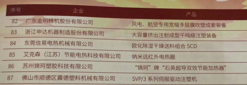 根據(jù)中國機械聯(lián)合會2018第2號公告,申達公司的“大容量擠出注射成型千噸級注塑裝配”成功入選“改革開放40周年機械工業(yè)杰出產(chǎn)品”。