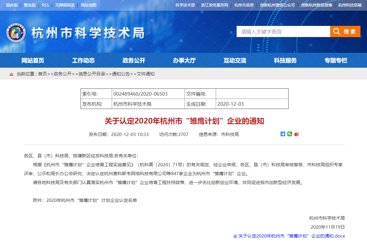 近日,杭州市科學技術局發(fā)布了《關于認定2020年杭州市“雛鷹計劃”企業(yè)的通知》,拾光藝創(chuàng)公司經歷長達半年時間的申請準備,于11月正式通過杭州市2020年“雛鷹”企業(yè)評選認定,成為上榜企業(yè)中為數(shù)不多的文創(chuàng)企業(yè),并獲得專項資金獎勵以及貸款貼息的政策扶持。