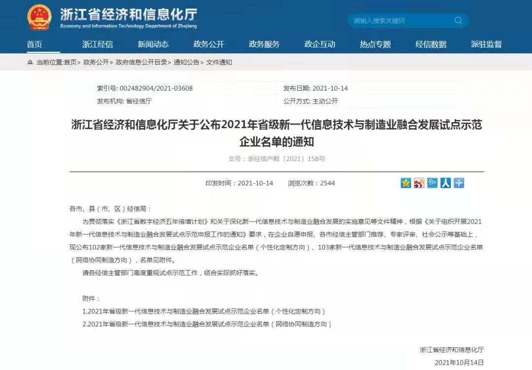日前,浙江省經(jīng)濟(jì)和信息化廳公布了103家新一代信息技術(shù)與制造業(yè)融合發(fā)展試點(diǎn)示范企業(yè)名單(網(wǎng)絡(luò)協(xié)同制造方向),省二輕集團(tuán)下屬申達(dá)公司成功入選。