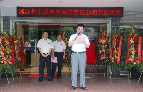 8月9日上午,浙江輕工聯(lián)典當有限責任公司開業(yè)慶典儀式在杭州市惠民路22號隆重舉行。省典當行業(yè)協(xié)會會長王鶴群和集團公司副總經(jīng)理、輕工聯(lián)典當公司董事長吳敏一起為典當公司揭牌、剪彩。