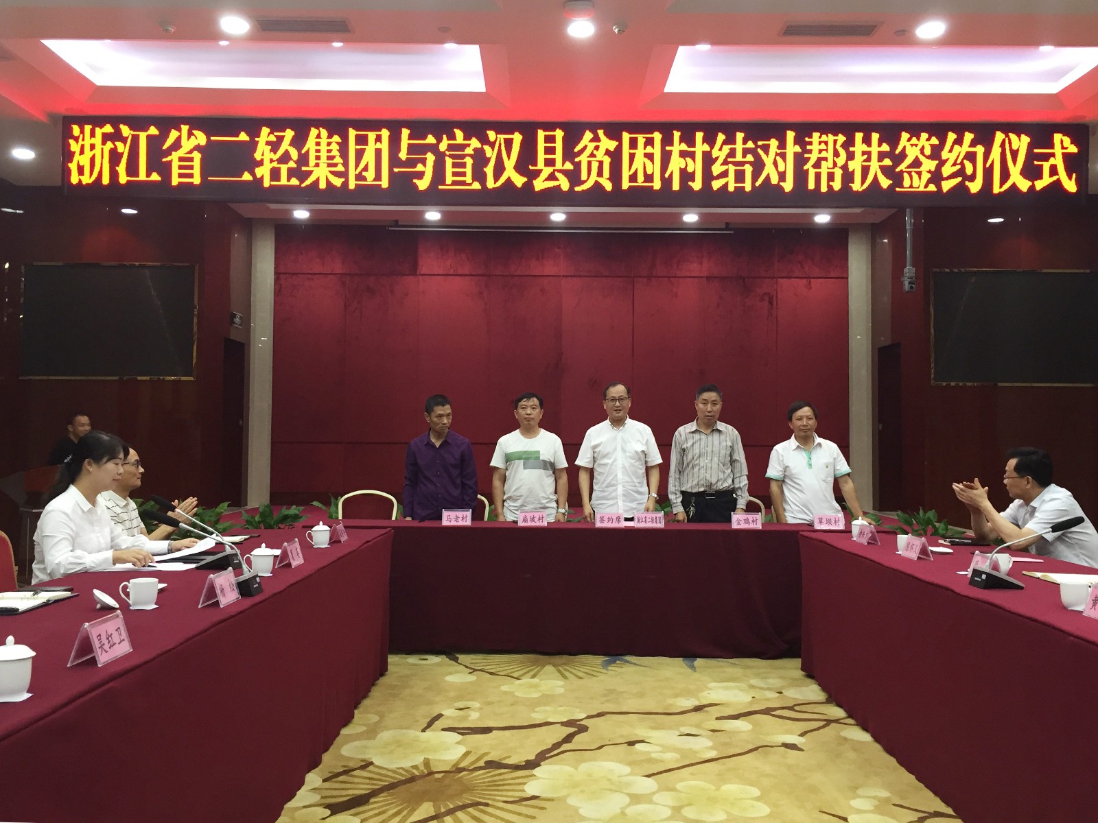 根據(jù)《中共中央、國務(wù)院關(guān)于打贏脫貧攻堅戰(zhàn)三年行動的指導(dǎo)意見》精神和2019年3月浙江省與四川省簽訂的東西部扶貧協(xié)作協(xié)議,為進一步做好東西部扶貧協(xié)作工作,浙江省國資委積極動員浙江省屬企業(yè),加大對四川省貧困村的結(jié)對幫扶力度,聚焦脫貧攻堅目標任務(wù),堅持精準扶貧精準脫貧基本方略,積極履行國有企業(yè)的社會責(zé)任和政治擔(dān)當。7月15日浙江省國資委黨委副書記陳月亮親自率領(lǐng)省屬23家集團公司赴四川舉行“東西部扶貧協(xié)作資金捐贈儀式”,省二輕集團公司根據(jù)國資委的要求動員所屬廣杰投資管理公司和商業(yè)資產(chǎn)經(jīng)營公司與四川省宣漢縣龍泉土家族鄉(xiāng)草壩村、金雞村、扇坡村、渡口土家族鄉(xiāng)馬老村簽署了2019年東西部扶貧協(xié)作幫扶資金捐贈協(xié)議,捐贈資金每村每年不少于貳拾萬元。