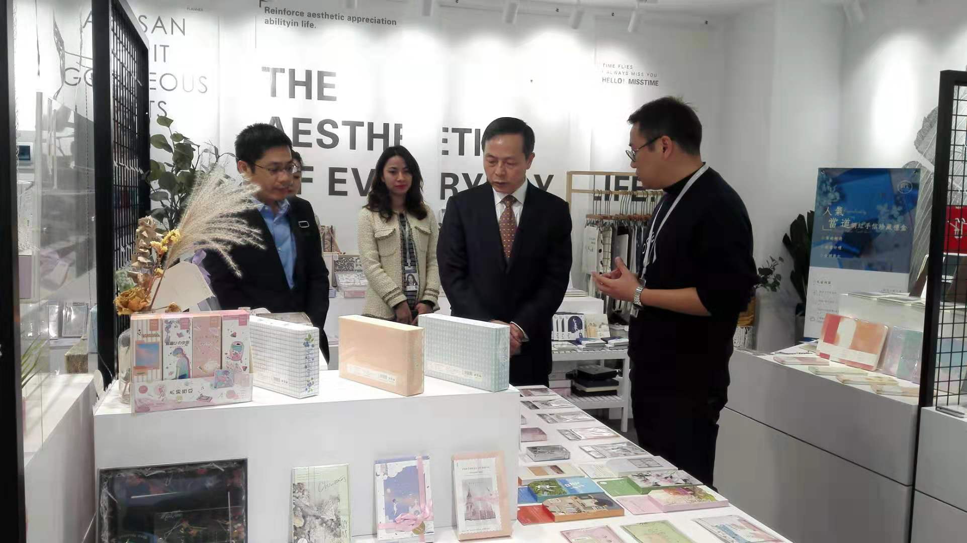 虞岳明一行先后考察了拾光藝創(chuàng)文創(chuàng)產(chǎn)品展示區(qū)、文創(chuàng)內(nèi)容輸出演示區(qū)和產(chǎn)品組、品牌組、插畫組等員工工作區(qū),并與拾光藝創(chuàng)核心團(tuán)隊(duì)進(jìn)行座談。在聽取相關(guān)情況匯報(bào)后,虞岳明對(duì)拾光藝創(chuàng)工作給予充分肯定。一是拾光藝創(chuàng)團(tuán)隊(duì)年輕富有活力,協(xié)作精神好,危機(jī)意識(shí)強(qiáng)。二是善于運(yùn)用頭腦風(fēng)暴,注重產(chǎn)品創(chuàng)意設(shè)計(jì),注重提供增值服務(wù),業(yè)務(wù)發(fā)展勢(shì)頭好。三是年輕黨員多,企業(yè)文化很有特色。他指出,拾光藝創(chuàng)發(fā)展實(shí)踐證明,集團(tuán)公司大力培育工美文化主業(yè),推進(jìn)文化與旅游、創(chuàng)意、數(shù)字經(jīng)濟(jì)深度融合發(fā)展的路子是正確的。