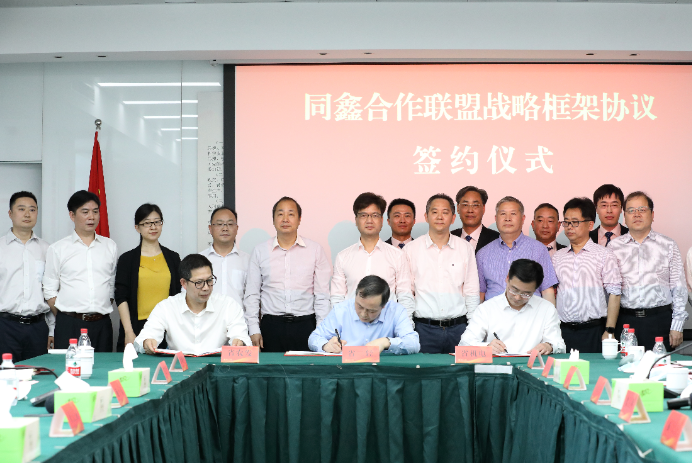 5月8日上午,省二輕集團與省農(nóng)發(fā)集團、省機電集團在省二輕集團總部簽訂“同鑫合作聯(lián)盟”戰(zhàn)略框架協(xié)議。省國資委總會計師董正泉,省二輕集團黨委書記、董事長虞岳明,黨委委員、副總經(jīng)理酈幾寧,省農(nóng)發(fā)集團黨委書記、董事長施小東,黨委委員、副總經(jīng)理傅德榮,省機電集團黨委副書記、總經(jīng)理楊震宇出席簽約儀式。